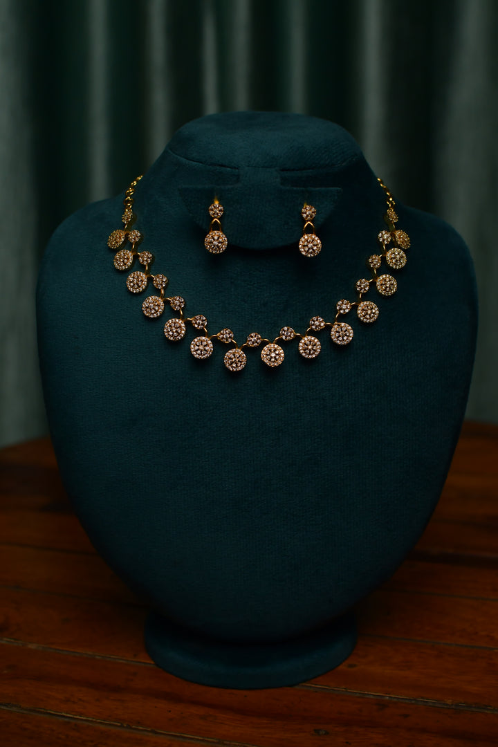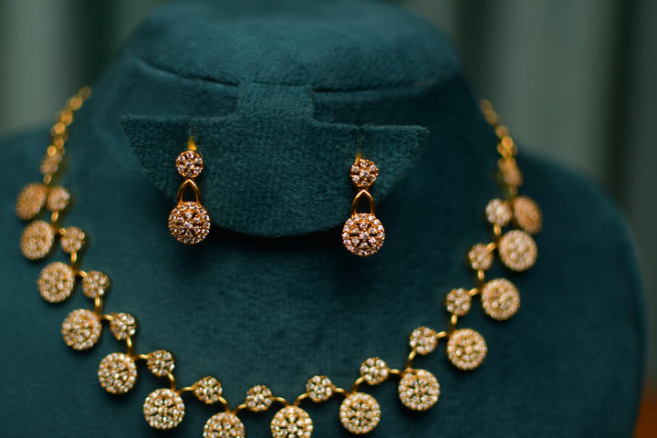 Shimmer Disc Pavé Gold Necklace & Drop Earrings Set – Modern Party Jewelry | SKU J85